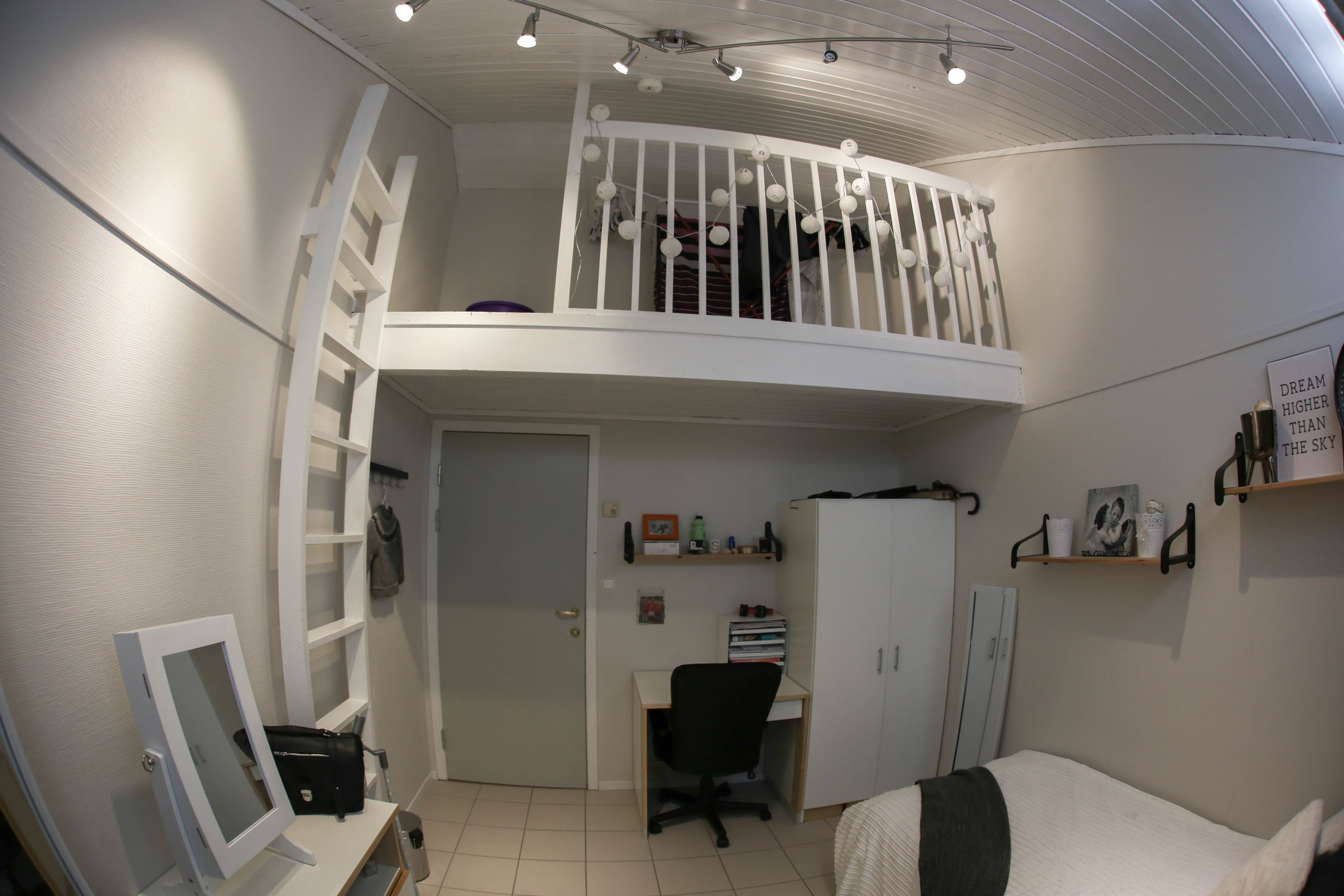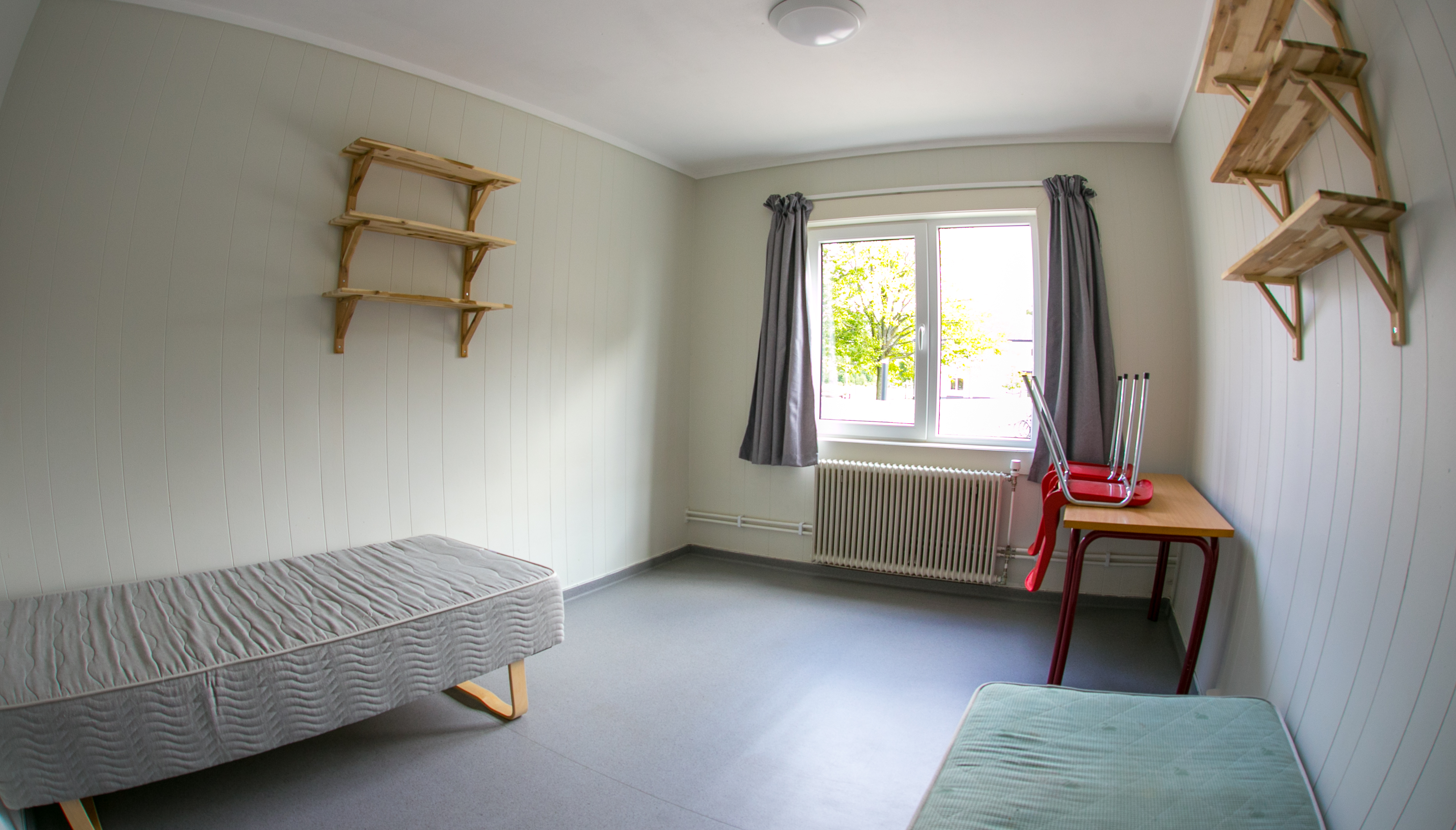 Dette er leiligheter med to rom m/hems, bad og kjøkkenkrok. Fra hvert rom er det utgang til terrasse, og flere av rommene er rett ved sandvolleyballbanen. To elever deler en slik leilighet og har da hvert sitt rom. C-leilighetene har vært veldig populære, og sammen med G-internatet er de også det dyreste alternativet vi har. De fleste rommene på C er pusset opp nylig.