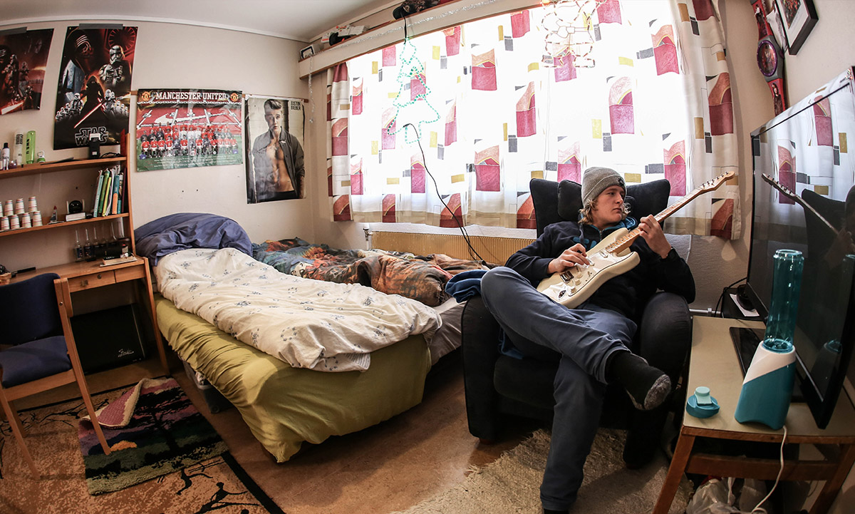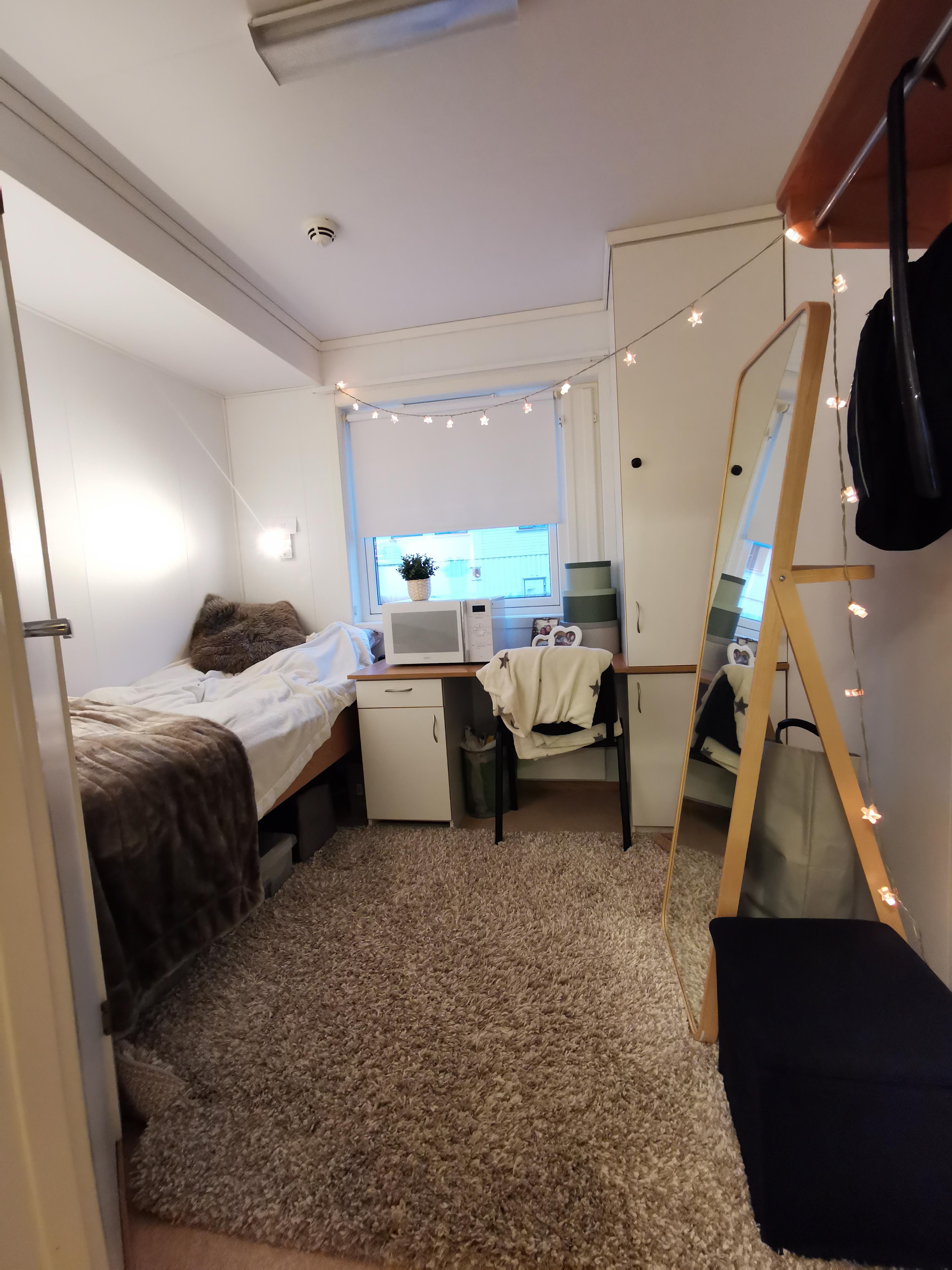 Dette er bygget på samme måte som A – internatet. Rommene er en liten tanke større enn på A, og har dusjrom i hver etasje. Toaletter, vaskemaskiner og kjøkken er også felles. De siste årene har populariteten til B-internatet (spesielt oppe) tatt seg voldsomt opp og er blant våre mest etterspurte alternativ. Flere av rommene på B er pusset opp nylig!