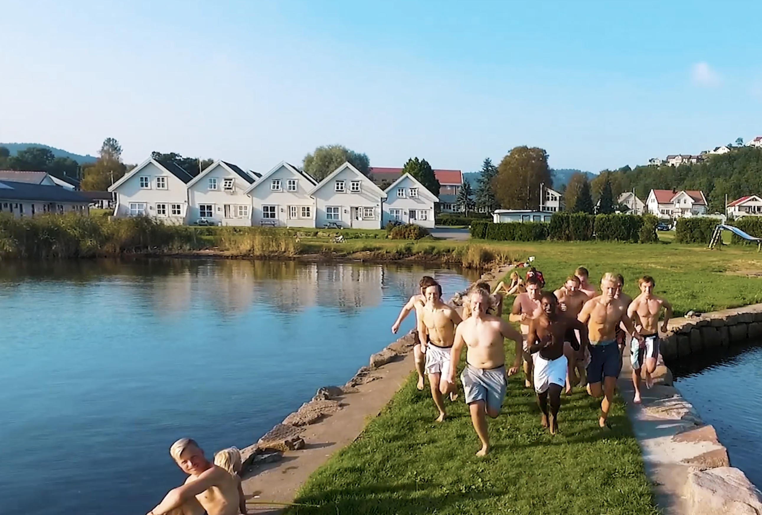 Dette er to rekkehus som står helt nede ved stranda. Det er fire rom i hvert hus. To oppe og to nede. Hver leilighet har dessuten bad m/ vaskemaskin og kjøkken. Leilighetene har også terrasse. Rommene i 2. etasje har vask. Man kan rett og slett ikke få bedre beliggenhet og kan nesten hoppe i sjøen fra balkongen. Liker du å fiske med flue? Her er det sjøørret rett utenfor!